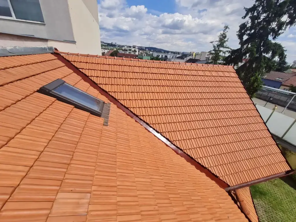 V našem nedávném projektu v Brně jsme se specializovali na profesionální čištění střechy s pálenými taškami, které je nezbytné pro její dlouhodobou ochranu a vizuální přitažlivost. Tento příspěvek v našem portfoliu ilustruje, jak pečlivé čištění dokáže obnovit původní vzhled střechy a zároveň ji chránit před negativními vlivy počasí. Kromě čištění jsme provedli i antikorozní úpravu a nátěr úžlabí, což přispívá k další ochraně střechy proti korozi a zajišťuje, že úžlabí zůstanou funkční a esteticky laděné s celkovým vzhledem domu.