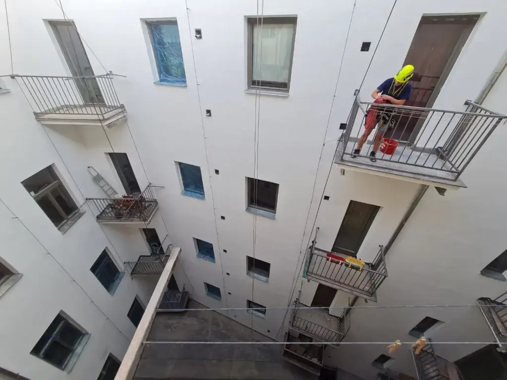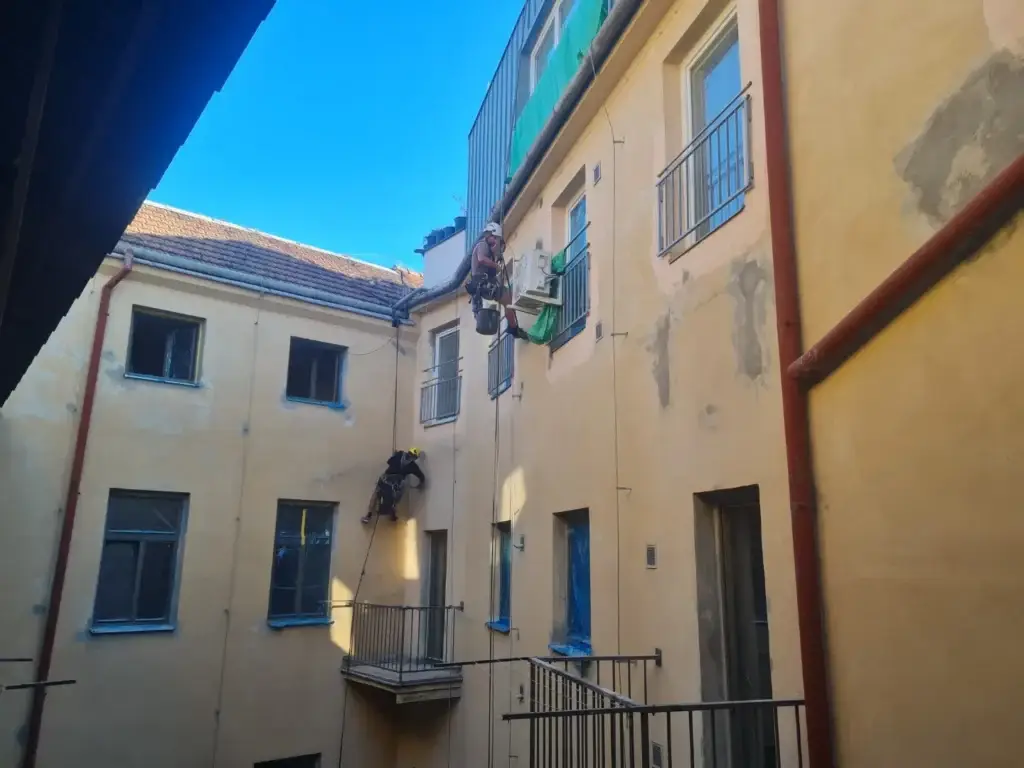 Představujeme vám unikátní projekt z našeho portfolia, kde jsme pomocí horolezecké techniky kompletně revitalizovali fasády. Tato metoda nám umožňuje pracovat efektivně a bezpečně na složitě přístupných objektech a výškových budovách, kde by tradiční postupy byly nákladné nebo nepraktické.