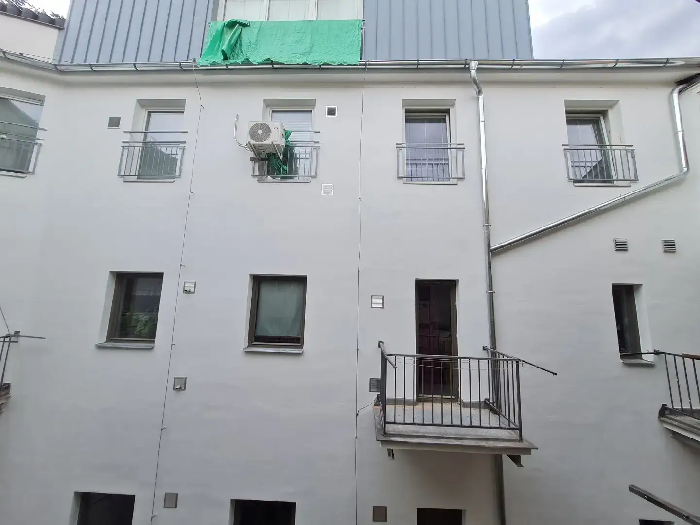 - Montáž okapových žlabů a svodů: Nové okapové systémy jsou instalovány s cílem optimalizovat odvodnění a chránit fasádu před vodními škodami.