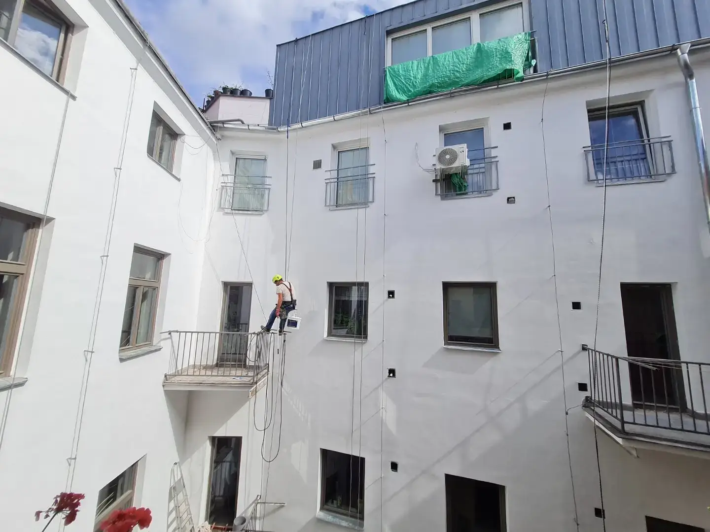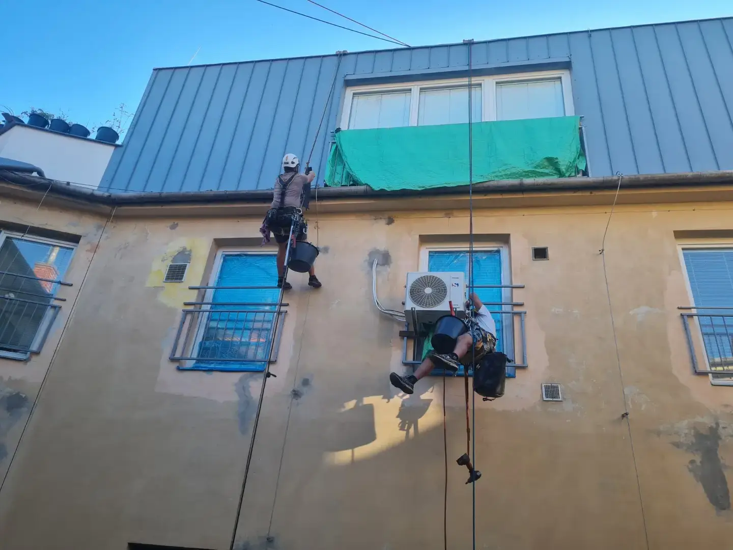 Představujeme vám unikátní projekt z našeho portfolia, kde jsme pomocí horolezecké techniky kompletně revitalizovali fasády. Tato metoda nám umožňuje pracovat efektivně a bezpečně na složitě přístupných objektech a výškových budovách, kde by tradiční postupy byly nákladné nebo nepraktické.